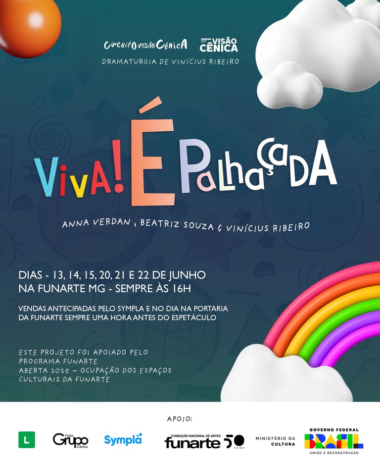 Em Viva! É a Palhaçada, conhecemos Trampulim, um jovem palhacinho preto e branco que sonha em se tornar colorido como os outros artistas do circo. Decidido a mudar sua aparência, ele embarca em uma aventura para encontrar o Arco-Íris, acompanhado pela divertida palhacinha Darcy e um boneco de pano mágico, que traz ainda mais encanto e risadas à jornada. Ao longo do caminho, Trampulim aprende que sua verdadeira magia está em ser quem ele é. No final, ele descobre que seu visual preto e branco é seu grande diferencial e que ele não precisa mudar para fazer as pessoas felizes.